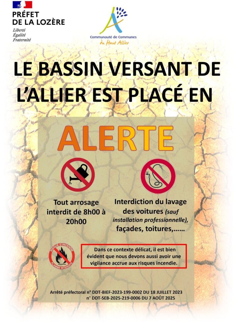Le Bassin versant de l’Allier est placé en Alerte sécheresse.